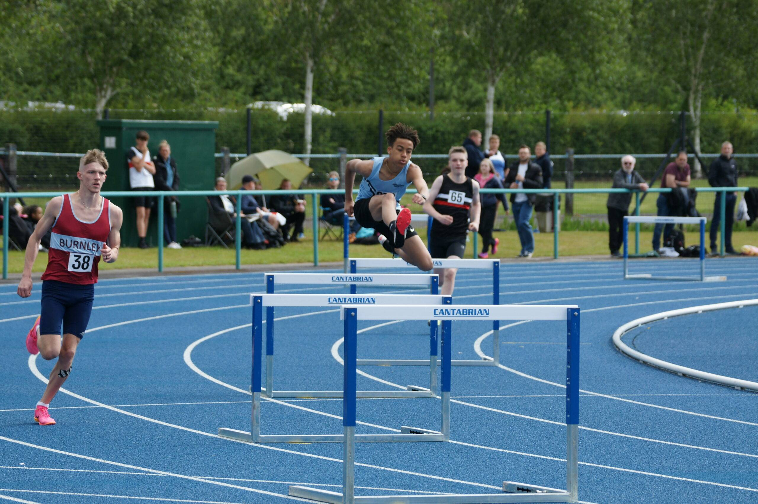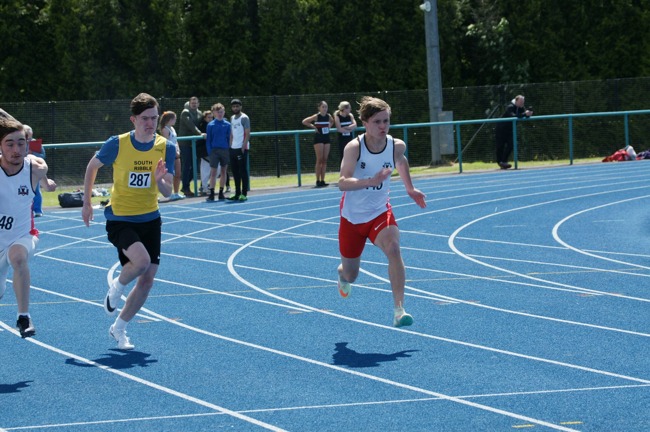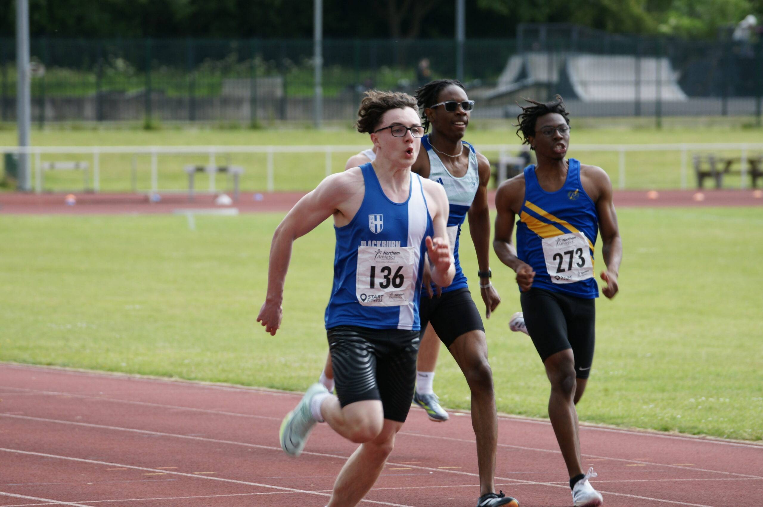 Blackburn Harriers athletes have been busy over this last few days at the Northern U20/Senior Track & Field Championships held at Middlesborough over two days, at the Lancashire Schools held at Uclan in Preston and at the Junior Lancashire Fell Championships held at Cowpe. The wind was blowing at Middlesboprough over the two days of the Northern T&F Championships but that didn’t deter the athletes from producing very good performances over the weekend. One of the highlights was the running of sprinter Charlie Unsworth who won Silver on Saturday in the U20 Men’s 100m with a time of 11.22 into a headwind of minus 1.8 before turning that into Gold on Sunday. In the semi-Final Charlie took the win in a time of 22.19 followed by a quality run in the Final – clocking a new PB of 21.75 in to a head wind of minus 0.7 to take the win and the Northern title. On Saturday Charlotte Williams took the second medal of the day as she placed 3rd, winning the Bronze medal with a throw of 57.66m alongside Matthew Heywood featuring in the Senior Men’s Hammer, narrowly missing out on the podium by 65 cms as he placed 4th behind the winner – Eddie Jeans (61.89m). Next up was the Senior Men’s 1500m Final resulting in a Silver Medal for Matt Ramsden who just missed out on the Gold by 17 one hundreths as he ran 3.55.88 behind the winner – Henry Johnson (3.55.71); And, in the U20 men’s Final there were two more Medals to add to the tally for Blackburn Harriers as Dexta Thompson won the race and the title in a time of 3.59.90 followed in the Silver Medal position by team mate Daniel Smith who clocked 4.02.56.