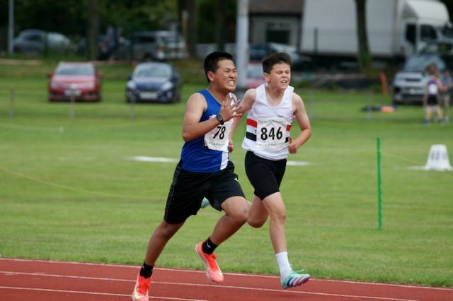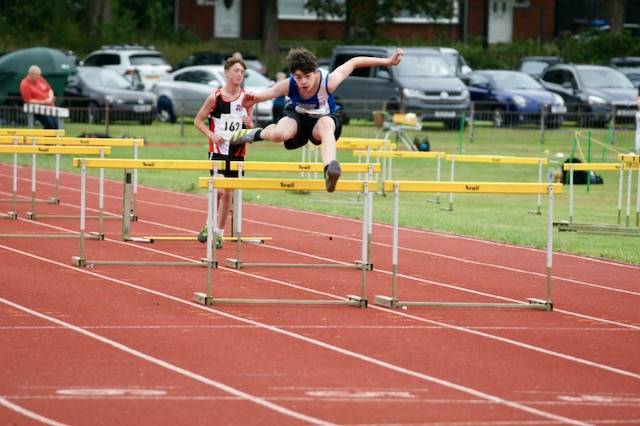 In the sprints James McCauley ran 13.7 (4th) in Heat 2 of the U17 Men’s 100m and 28.3 in 6th in Heat 1 of the 200m. U15 Boys – Joshua Carrier ran 14.0 and Ollie Haworth 14.0 in 7th and 8th places overall in the 100m – and in the U13 Boys – Xuanqiao Llang clocked 13.9 with team mate Noah Briscoe running a new PB of 14.1 in 4th and 5th places overall – following that up later in the afternoon by both boys winning their 200m Heats – Xuanqiao winning Heat 1 in 28.2 and Noah winning Heat 3 in another new PB of 29.5 – Xuanqiao winning overall in the three Heats and Noah placing 5th. U17 Evie Fort ran 14.2 in 3rd spot (Heat 2) of the 100m and in the U15 Girls 100m Dana Juma ran 14.3 to place 13th out of 21 girls in the four Heats followed by Abigail Awe clocking a new PB in the U15 Girls 200m with 29.1 3rd in Heat 1. Amelia Carrier and Sophie Douglas placed 15th and 17th overall in the U13 Girls 100m with respective times of a new PB of 15.6 and 16.0 for Sophie in her first run over the distance – earlier in the day Sophie Douglas ran 15.3 in the U13 Girls 70m Hurdles.