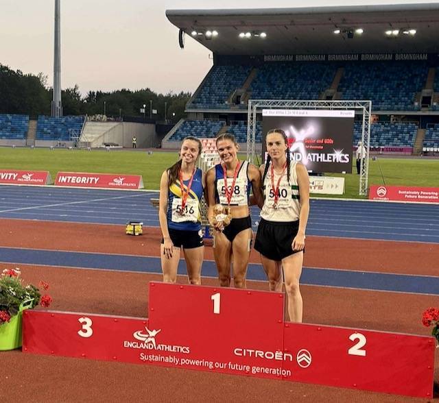 Over the weekend of July 25 – 27th the England Athletics Senior & U20 Championships (inc Para) & Senior & U20 Combined Events Championship were hosted at Alexandra Stadium and included a number of Blackburn Harriers who had qualified for the National Championships. First year U23 Abigail McAndrew had a great Championships racing the 1500m consisting of three senior and four U23 women. Abigail came home in 2nd place (4.19.52) behind senior athlete Lucy Jones who won in 4.19.20 – which meant – that she took the Gold Medal as first U23 and Silver Medal overall in the Seniors. Following the medal ceremony Abigail spoke to the Club commenting “So pleased with my run today, happy with how I ran it, so happy to come away with U23 England gold and senior sliver! Can’t wait for British senior champs next week“. Ben Stratton who had recently set a new personal best over 1500m (3.54.67) had qualified for the 800m where there was no lack of competition for sure. Ben – second year U20 – went in Heat 3 won in 1.51.13 (Rafferty Mirfin) and clocked 1.53.83 in 6th spot – the third time he has run 1.53 this season. 3rd year U20 Isabel Holt is another athlete who is having a good season, setting new personal best times for 1500 (4.29.90), 3000m (9.29.04) and 5000m (16.35.74). In the Championship 3000m, the heat became a factor as she came home in 8th place overall and 4th U20 with a time of 17.03.86.