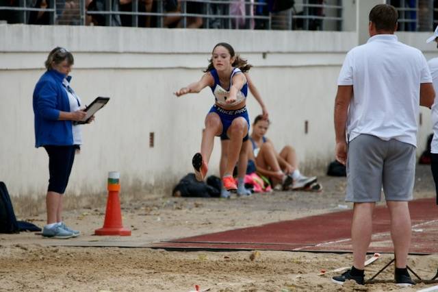 In the Jumps events – George Whittaker cleared 3.10m to take 2nd spot in the Pole Vault after coming back from injury after his last Decathlon as George Camara and Samuel Mutombo paired up for the Triple Jump – George coming 3rd in the A with 11.50m and Samuel winning the B with 11.46m. Samuel had earlier won the Long Jump with a leap of 5.66m alongside Logan McCredie who jiumped 4.54m and placed 3rd in the B. In the High Jump – Alex Burns-Groves cleared 1.55m in 2nd place in the A whilst Codie Dewhurst jumped 1.60m to wqin the B. Well done to Grace iLunga who was our sole Long Jumper who had to jump in pretty unpleasant conditions and came 4th in the Long Jump with 4.39m. – and there was a return to form for Imogen Robinson in the High Jump as she cleared 1.45m in the A High Jump (5th) with team mate, new member and debutant in any competition Lia Cooper who did well to place 3rd in the B with a clearance of 1.25m. Claudia Longton had an excellent Triple Jump competition placing 2nd overall with a new PB and the first time over 10m as she leapt out to 10.20m.
