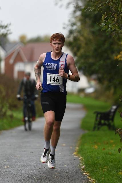 The conditions weren’t brilliant for the Accrington 10k road race held on Sunday October 26th which nevertheless, saw 360 runners finishing – the race won by Bradley Walsh in a time of 33.45. (RESULTS). Blackburn Harriers duo Ben Makin took 2nd place in a time of 35,.16 whilst U17 Peter Sagar-Moss won the Junior age group category, placing 12th overall in 38.10 – and this – after racing the cross country at Heaton Park, the day before.