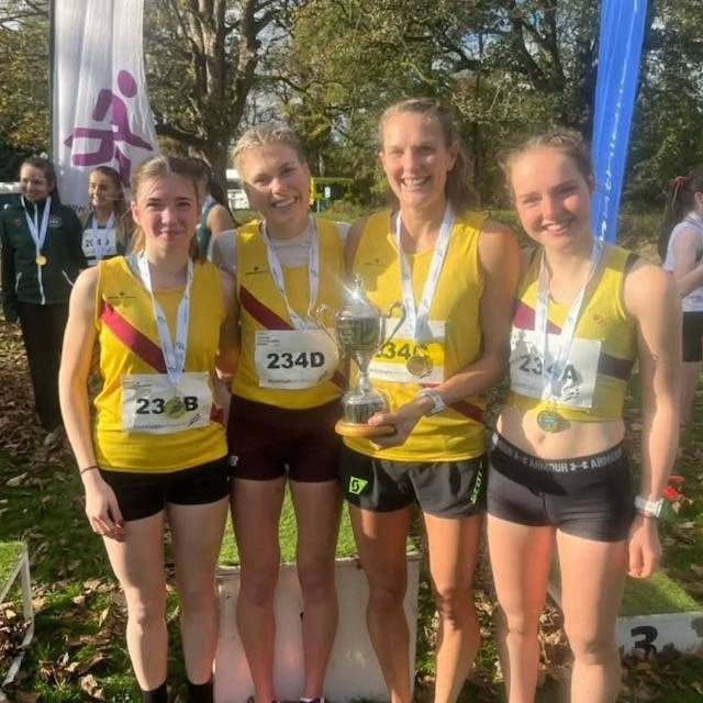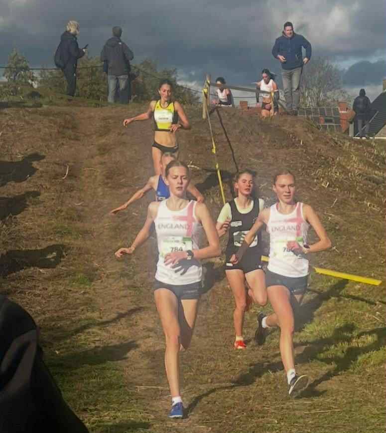 The Cross Cup in Roeslare, Belgium took place on Sunday October 26th and among the contestants were Blackburn Harriers U20 athletes Isabel Holt and Myles Fraser who had been selected to run for England in the Junior Women and Junior Men’s races. The Junior Women’s team had Zoe Gilbody, Isabel Holt, Katie Pye and Sabrina Coppola- Johansen making up the team – the four of them combining to win the Gold Medal. Isabel finished in 2nd place in a time of 16.27 behind the winner Zoe Gilbody (16.19) which won her the individual Silver Medal too – Katie finishing in 4th (16.44) and Sabrina 7th (17.28). So a great day for Isabel as she told the Club after her race ““So grateful to represent England in Belgium and to come away with individual sliver to start the XC season. It was a tricky course with lots of turns and hurdle jumps but was a lot of fun to be part of an amazing team. Excited to see what’s to come“.