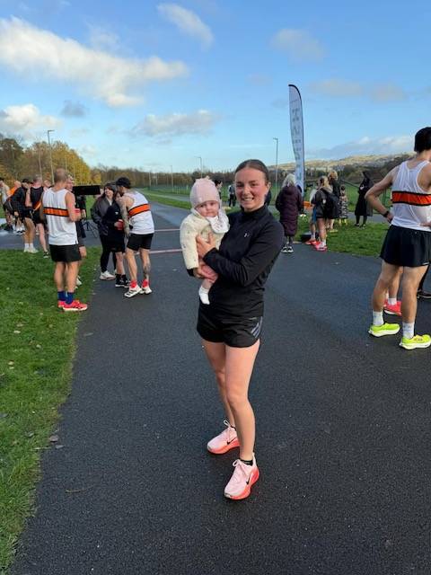 On the road, and it was the second race in two weeks for Ellen Sagar-Hesketh as she makes her return to training and racing after having her baby. A week ago, she ran her first race in a year when anchoring the Senior Women’s B team at the National Cross Country Relays in Mansfield. On Saturday November 8th she took part in the CraggRunner Sprint 5k at Barrowford – running 20.54 for the 5k course and placing 6th overall. U17 Peter Sagar Moss also ran in the Men’s race and came home as third U17 with a time 17.56. (RESULTS)