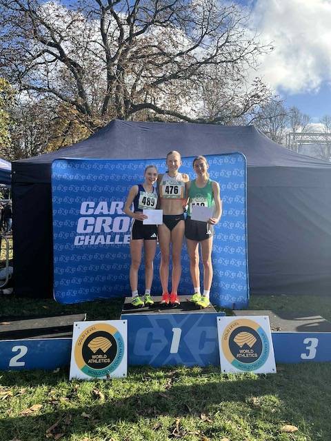This years Cross Challenge Series kicked off in Cardiff on Saturday November 8th which will be followed by fixtiures in Liverpool (Sefton Park) on November 22nd, London (Parliament Hill) on 7th Feb 2026 and finally in Nottingham Wollaton Park) on March 7th 2026. Making the trip down to Cardiff for the first in the Series were Blackburn Harriers Isabel Holt, Abigail McAndrew, Matthew Clark and Jenny McAndrew. Sixty seven athletes lined up for the U17 and U20 Women’s race which Isabel was running in and what a fine race she had, coming home as 2nd in the U20 Women’s race and 3rd overall with a time of 15.22 behind Beth Lewis in 2nd (15.19) and Innes Fitzgerald who won the race in 14.29. A very happy Isabel spoke to the Harriers after her race as she told us that it was a “Great day out at the Cardiff cross challenge and I’m really pleased to have come away with 2nd place. Was a tough but fun course and lots of learning opportunities to take away too. I’m excited for Liverpool now! “ One hundred and twelve athletes started the U17 and U20 Men’s race which had Matthew competing – a week after being part of the Silver Medal winning team in Mansfield at the English National cross country relays. Matthew had a good run. coming home in 44th spot, posting a time of 17.50 – just four seconds separating six places. Abigail was next up in the Senior Women’s Mile European Trials which had twenty three athletes on the start line. Abigail – who had run the fastest Leg in Blackburn Harriers Senior Women’s 6th place at Mansfield – had another fine race finishing in 10th spot (5.15) – the winner Holly Dixon running 5.02. Abigail spoke to the Club after her race, telling us that she was ‘Really happy with my race and 10th with the seniors at euro trial, stayed there aslong as I could and managed to finish strong“. Jenny also decided to run and lined up in the Senior Women’s won by Kenya’s Cynthia Chepkirui with Kenya’s Sheila Jebet in 2nd and Canada’s Ceili McCabe in 3rd. Jenny ran ran 31.50 and enjoyed the day, telling the Club afterwards that “It was a great experience, the Atmosphere was fantastic and I somehow made it safely over the huge log jump!”
