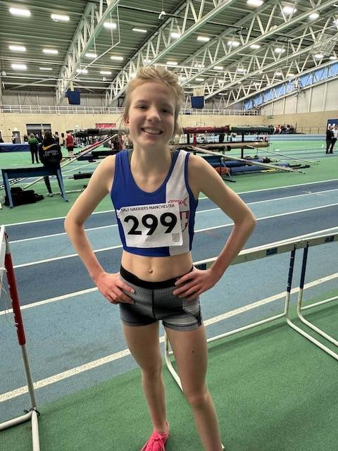 All things Indoors this week where Sportcity was hosting the third of its Winter Indoor Series Meetings. Starting off with the 60m races – Blackburn Harriers U17 Ernie Hobson was the first of the Clubs athletes to compete on the day, clocking 7.35 in 3rd place (Heat 15). Heat 21 saw U17 Grace iLunga clock 8.99 in 5th place followed by a win for U15 Darcie Belshaw in Heat 25, running 8.44. Next up in Heat 27 was U15 Mimi iLunga running 9.22 in 5th spot followed in Heat 28 by Mia Logan clocking 9.73 in 4th place. The first of the field events saw Tamzin Osborne clear 2.80m in a mixed pool of six female and four male athletes – Tamzin placing 3rd U20W. Following his 60m Race Ernie Hobson then went and won his Heat 15 of the 200m clocking 23.89 to cross the line in first place.
