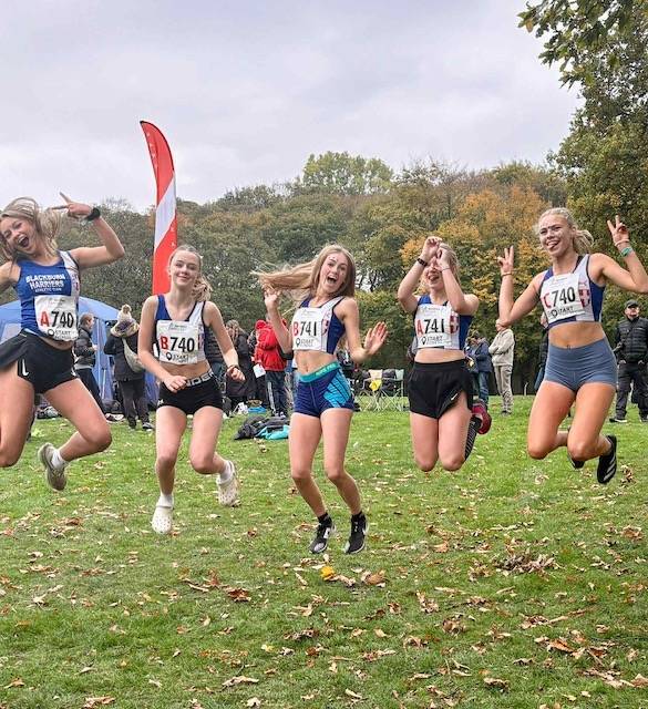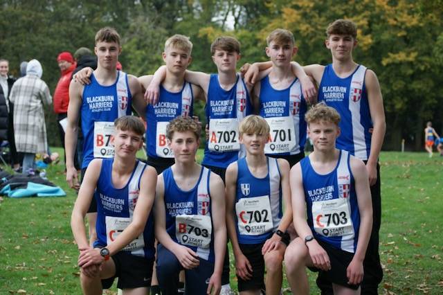 Final Race of the day for the Harriers was the Senior Men’s race featuring 60 Club teams with two from Blackburn Harriers – one full and one part team. Ross Harrison had a flyer on the first Leg for the A team, running the third fastest leg of the day, only bettered by Alfie Manthorpe (9.41) and Calum Johnson (9.26) as he came home in 2nd spot with a time of 9.50. Leg 2 had Hayden Mercer stepping up at the last minute into the A team coming home in 9th spot (11.10) followed by Isamel Alavrez El Hassany running his first ever cross country race for the Harriers, maintaining that place, running 11.15 with Jack Lamb running the 2nd fastest Leg for the team (11.07) finishing in 12th place. Ethan Cutler, Logan McCredie and Tom Monks were all up for running even though they weren’t in a complete team and did well – Ethan running 11.23 on Leg 1, Logan 11.42 on Leg 2 and Tom 12.02 on Leg 3.