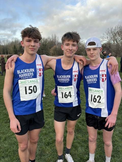There were team wins for both the U17 Women and U17 Men on the day. Lottie Hesketh, Isabelle Perry, Agatha Taylor and Bella McCredie made up the U17 Women’s team which took 1st place with Lottie in 3rd (16.32), Isabelle in 4th (17.07), Agatha in 5th (17.17) and Bella in 12th (18.34). 29 runners lined up in the U17 Men’s race – 13 of them coming from Blackburn Harriers – the lads going on to win the team race. Winning the race and leading the team home was Sam Aspey in 20.24 – backed up by fine runs from Jack Wood 4th (20.54), Henry Ward 5th (21.00), Theo Robinson 8th (21.52), Will Grundy 9th (22.24), Tom Falencki 10th ( 22.28), Peter Sagar-Moss 11th ( 22.29), Max Belshaw 12th (22.46), Max Winstanley 15th (23.11), George Holman 16th (23.13), Loucas Lancashire 19th (23.37), Liam Bennison 20th (23.49), Thomas North 22nd (24.46).