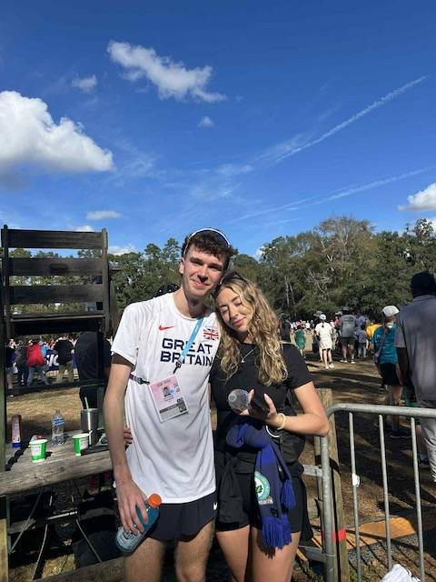 The World Cross Country Championships were held in Tallahassee, Florida January 10th, taking place in weather conditions, unlike anything experienced here in Britain for cross country – the race being run in 25 degress and high humidity. The course was man made with artificial obstacles introduced into it, including a ramp, wooden obstacles, water pool, sand patches and firm ground too. Blackburn Harriers Matt Ramsden was running in his second race for GB – his first being the U23 European Cross Country Championships in portugal in December 2025 where he he placed 6th overall and first British counter. Flying out four days before the race was due to to be run, Matt was joined by his girl friend Georgia and team mate Ben in a surprise visit the day before the race.