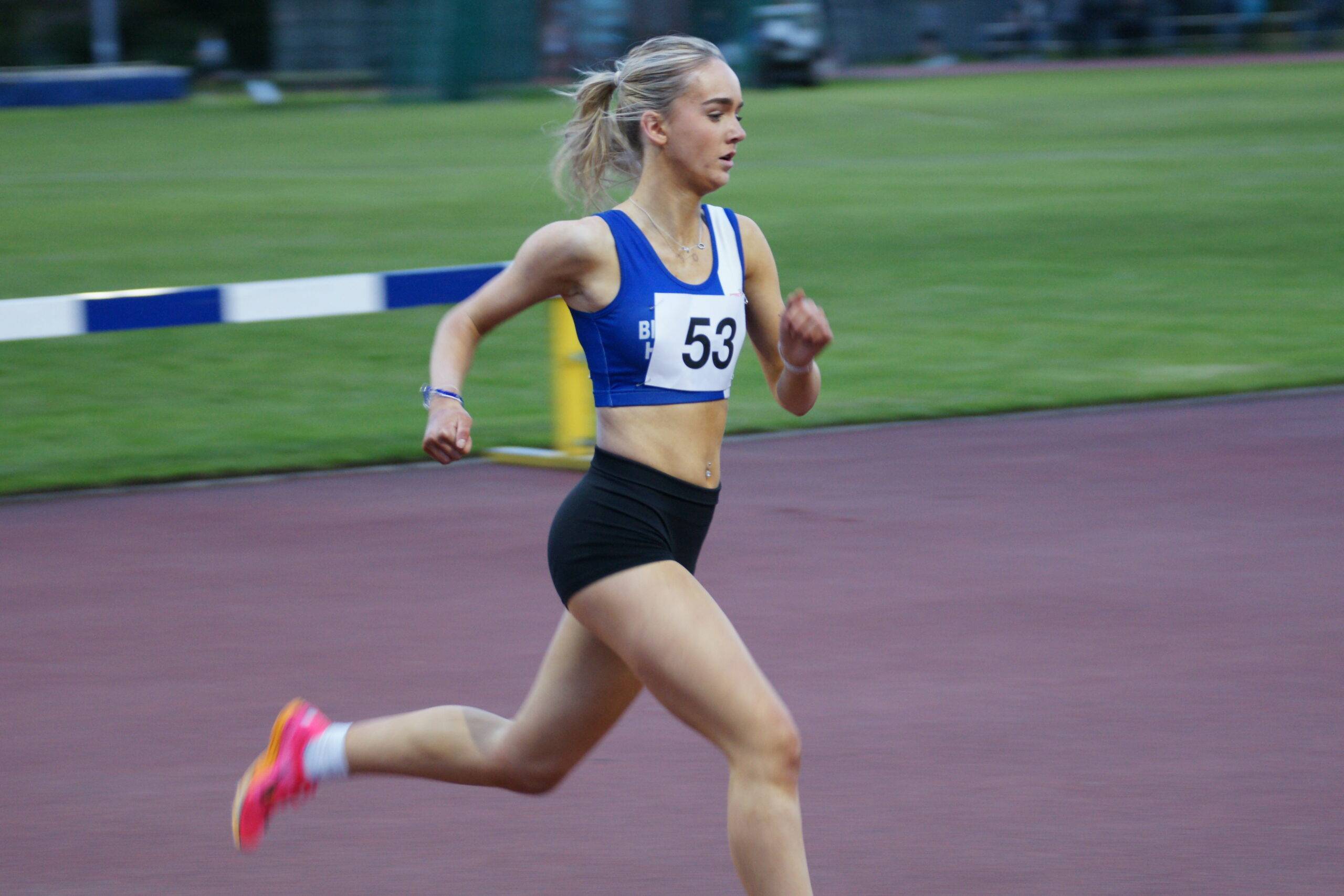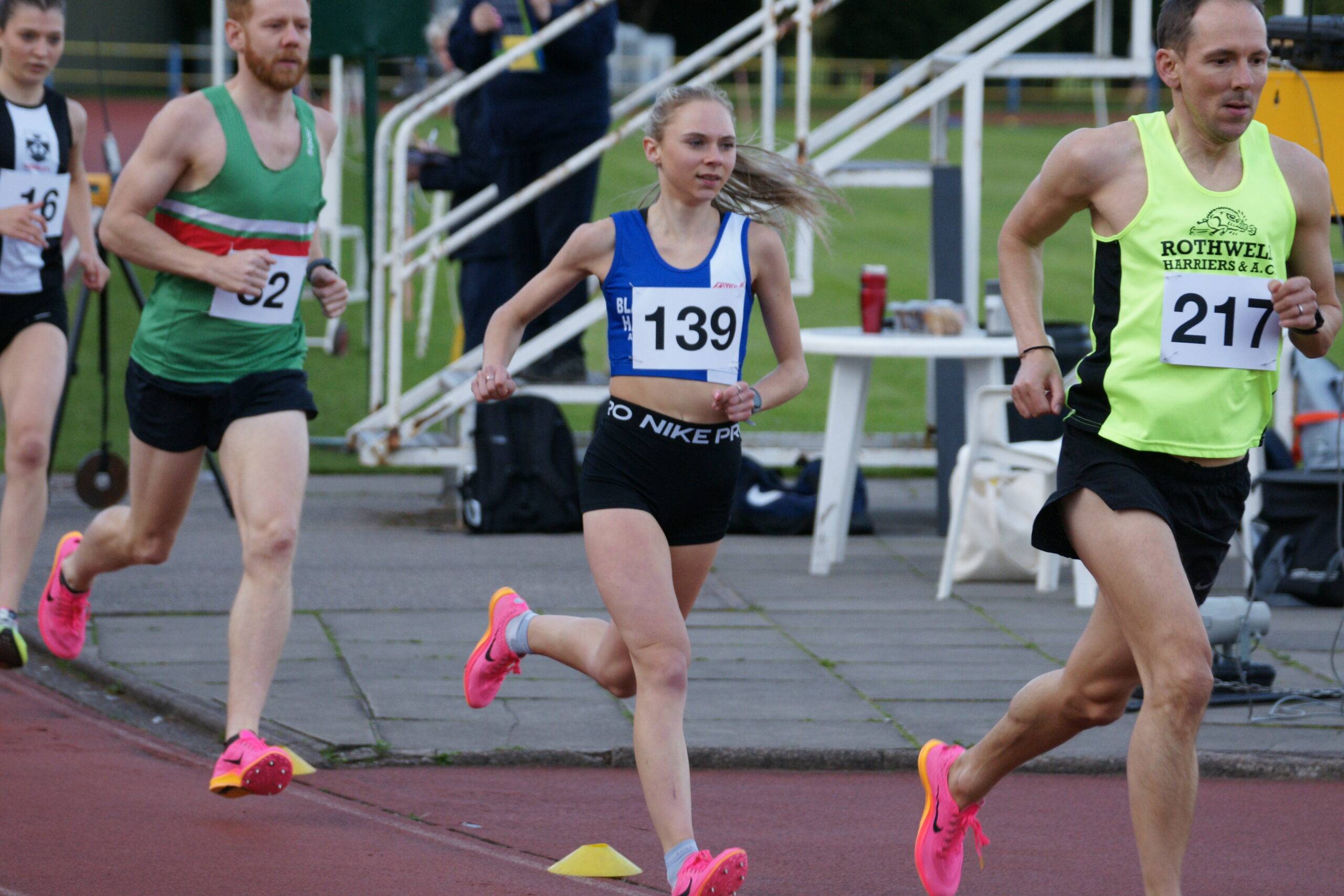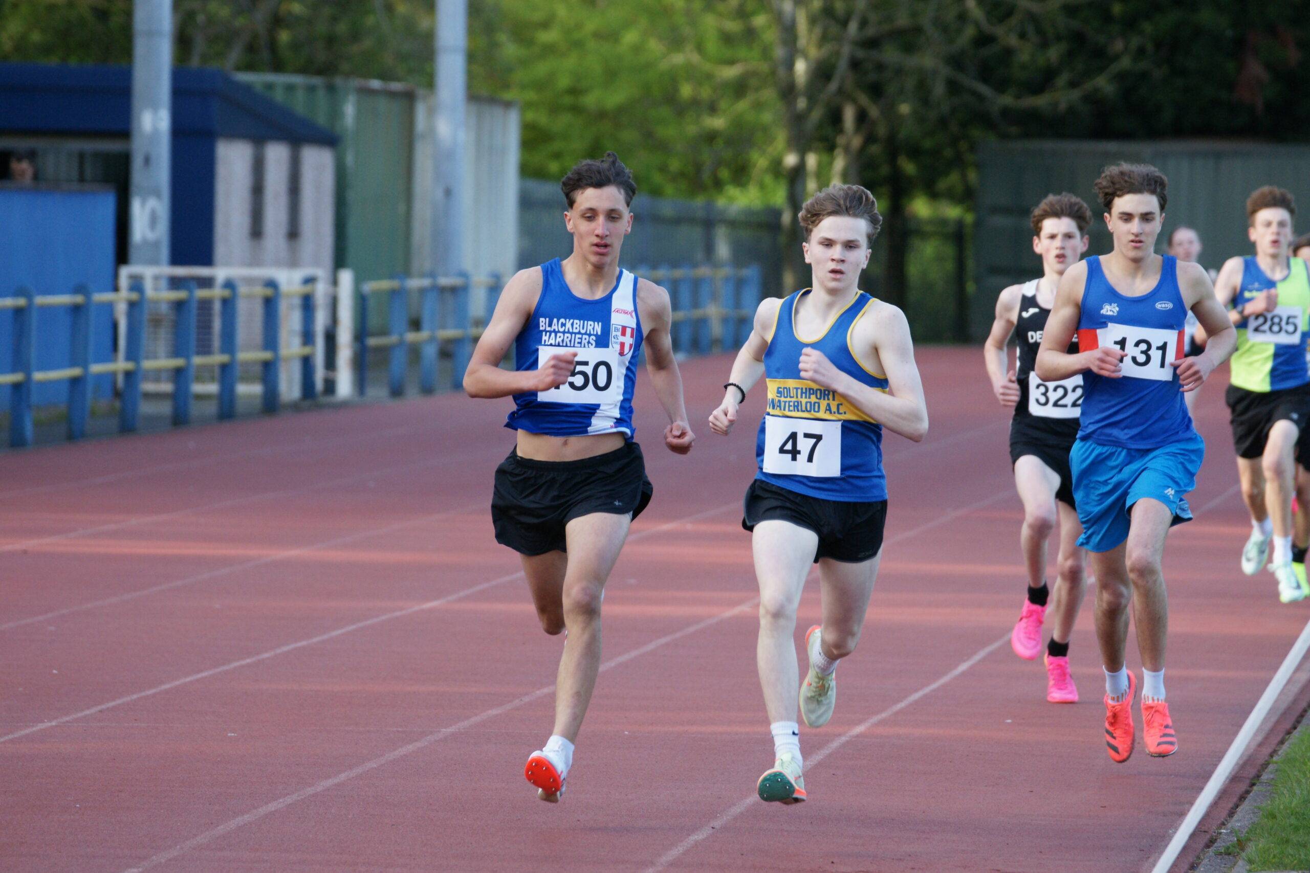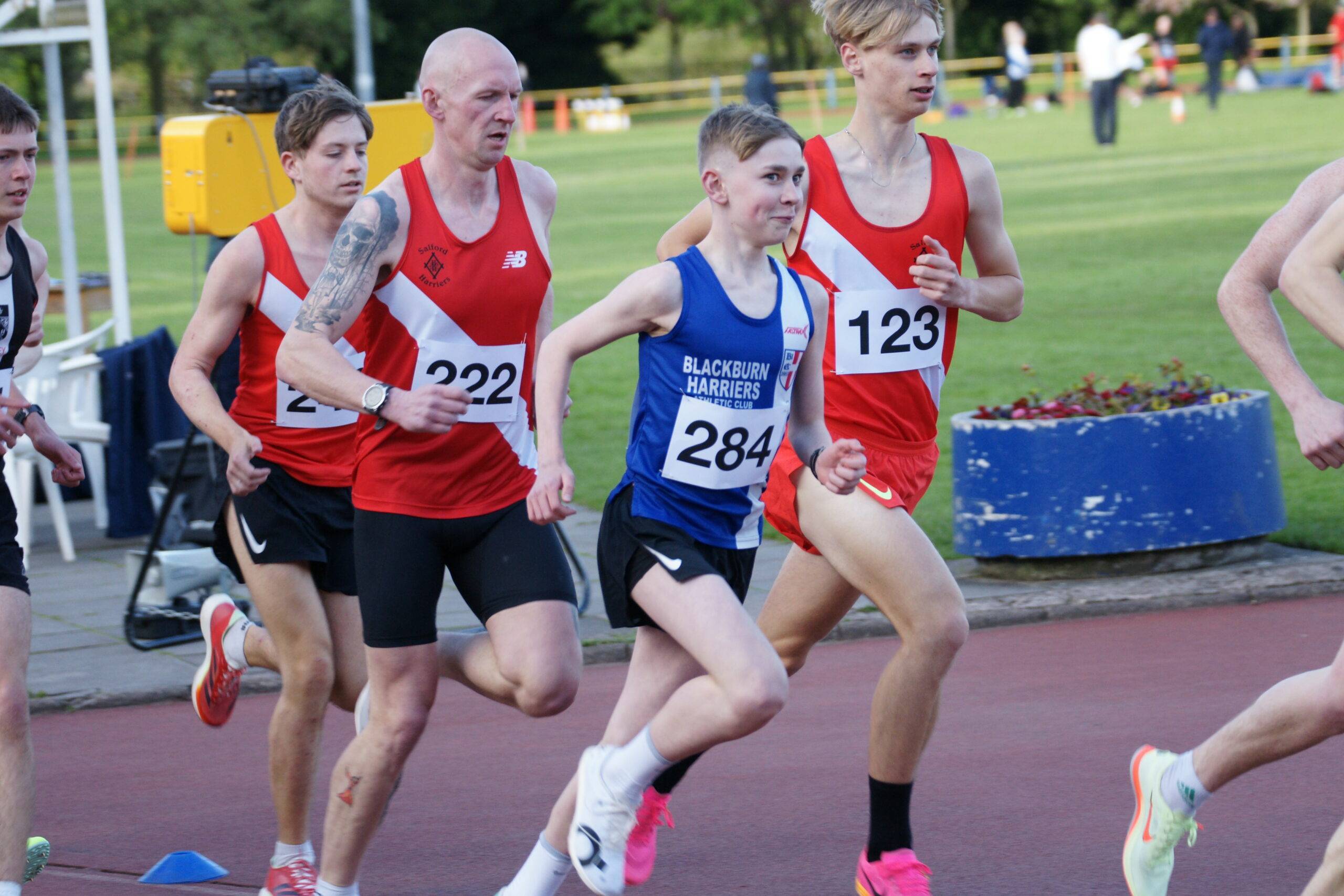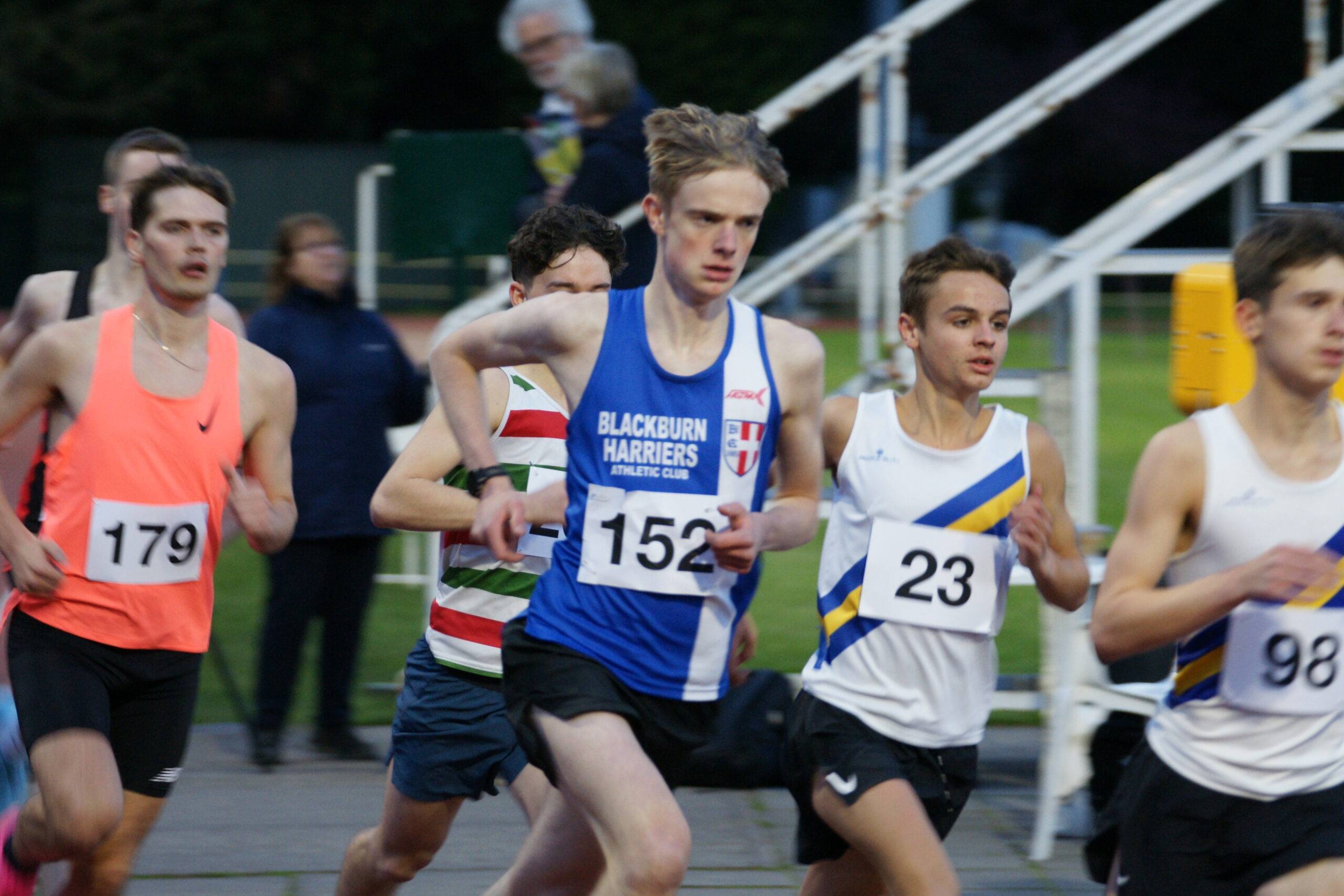 A pleasant but breezy setting was a change to the continuous rain that athletes have had to suffer over the last months, as this years Trafford Grand Prix Series got under way on Tuesday April 30th (RESULTS) and it turned out to be a successful night for Blackburn Harriers middle distance athletes. U15 Jack Baranowski was the first off in the 800m just failing to catch the winner of his race Caleb Still, but posted himself a new PB of 2.03.18 which at this early stage of the season places him 4th in the National Rankings. The five U15 800m races were followed by three Heats of the 3000m featuring 59 athletes in total. Twenty four lined up for the first Heat which was won by Matt Ramsden – his first track race of the season in a time of 8.25.80 with V40 Ben Fish in 9th place clocking 8.55.73, Ben’s time taking him straight to the top of the National Rankings. There was another fine run from first year U17 Sam Aspey who clocked a new PB time of 9.17.54 – an improvement of some 20 seocnds. Isabel Holt went in Heat 2 and knocked 12 seconds off her previous best to set a new PB of 9.47.43 and first female athlete in the race taking her to number 8 in the National Rankings. Evie Taylor went in the final Heat and came home in 5th spot in the Women’s race clocking 10.44.17, just four seconds outside her best.